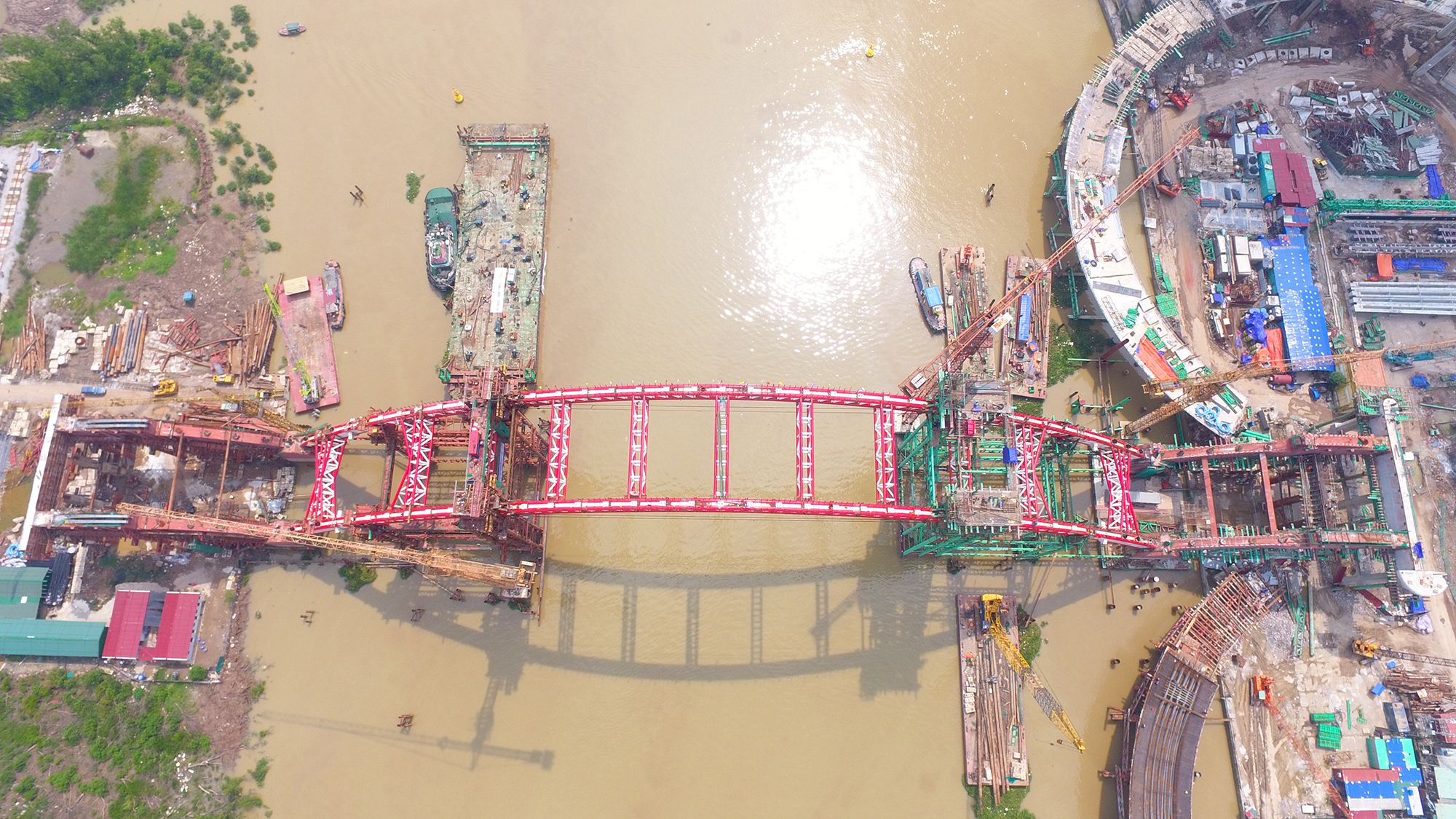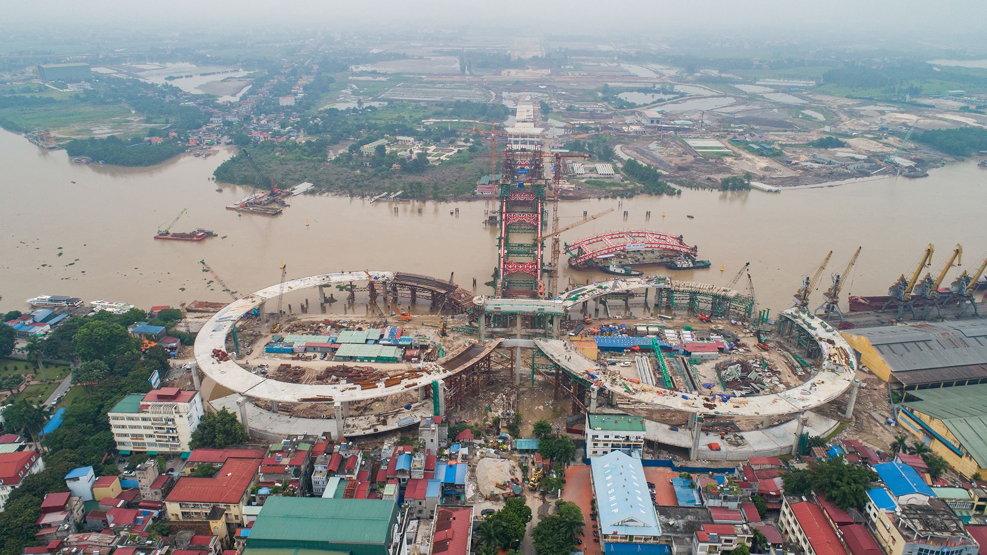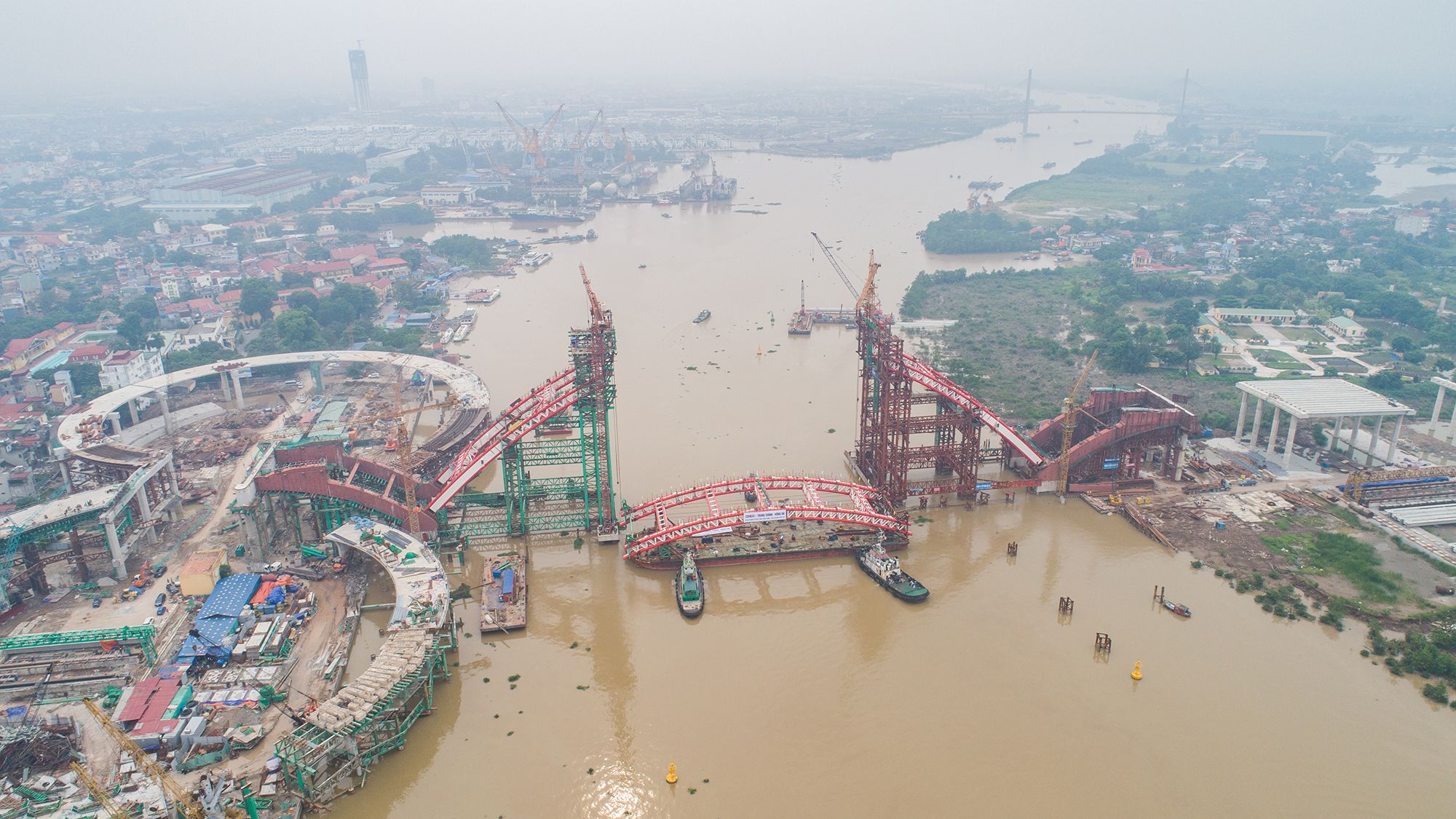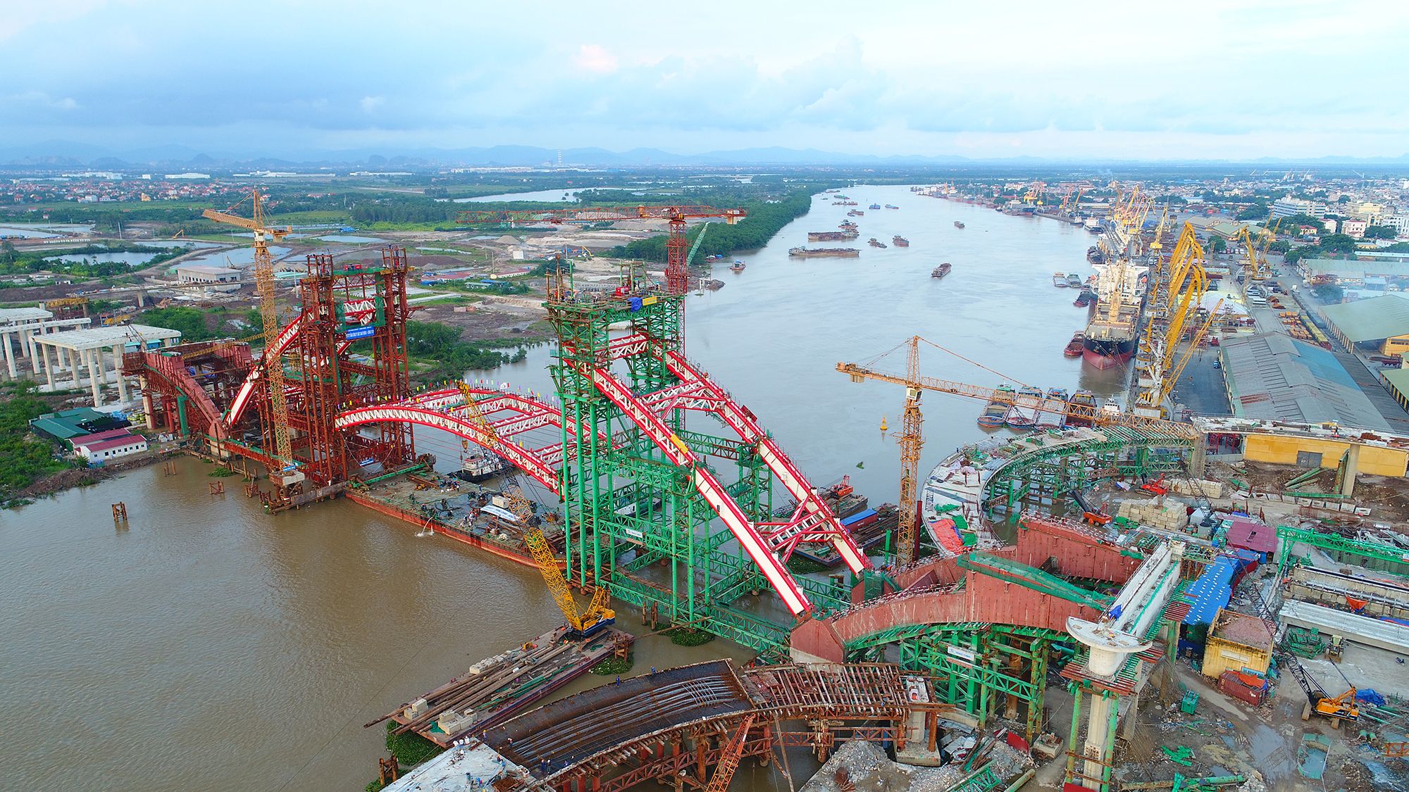 Với thiết kế kiến trúc đặc biệt và kết cấu vòm nhịp lớn phức tạp – công nghệ chế tạo kết cấu vòm thép trong xưởng và thi công trên hệ đà giáo tại công trường đòi hỏi quy trình kỹ thuật kiểm soát chặt chẽ và khoa học. Hệ thống nâng nặng 1600 tấn phục vụ hợp long đốt dầm đỉnh nặng 500 tấn được chúng tôi kiểm soát và vận hành thành công.