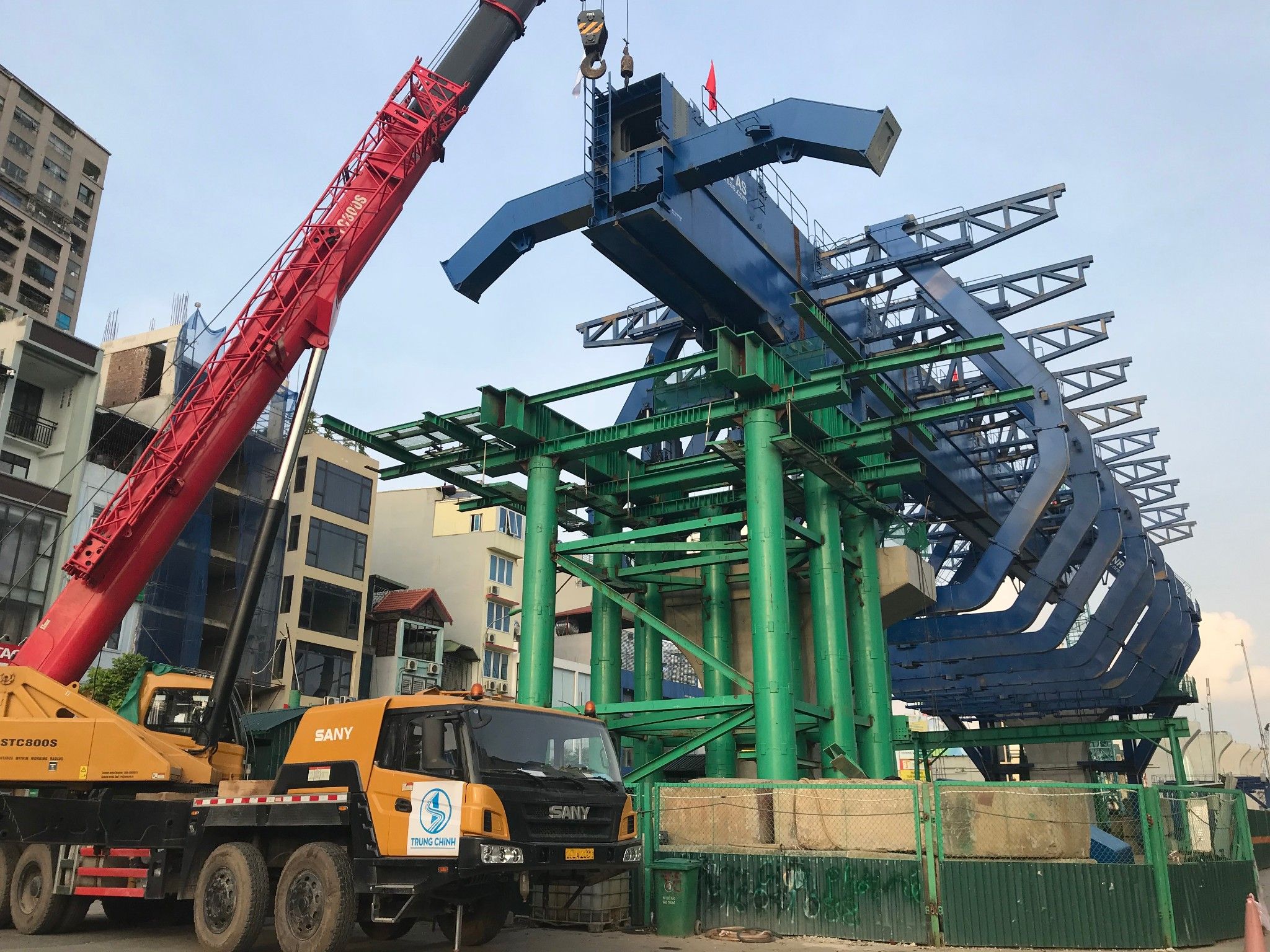 Dầm có thanh chống xiên bằng thép ống D300 từ sườn dầm lên cánh dầm.