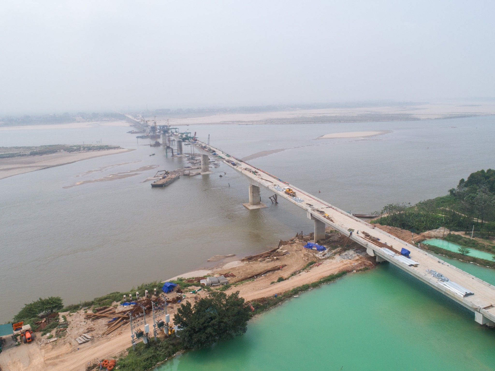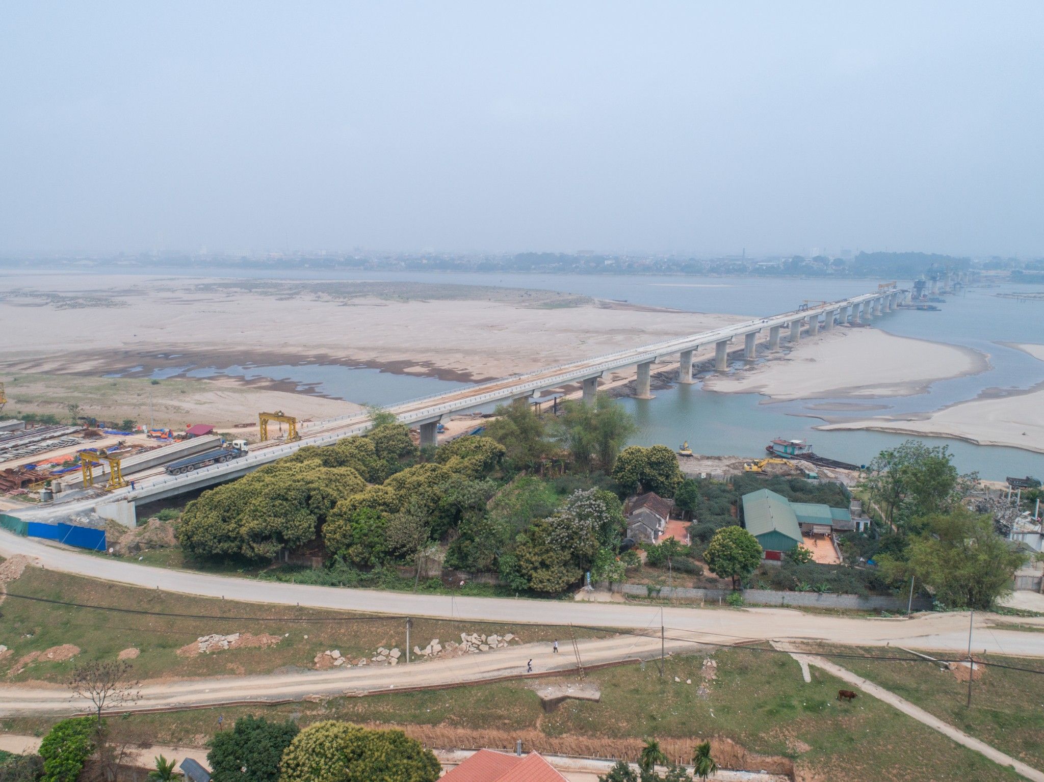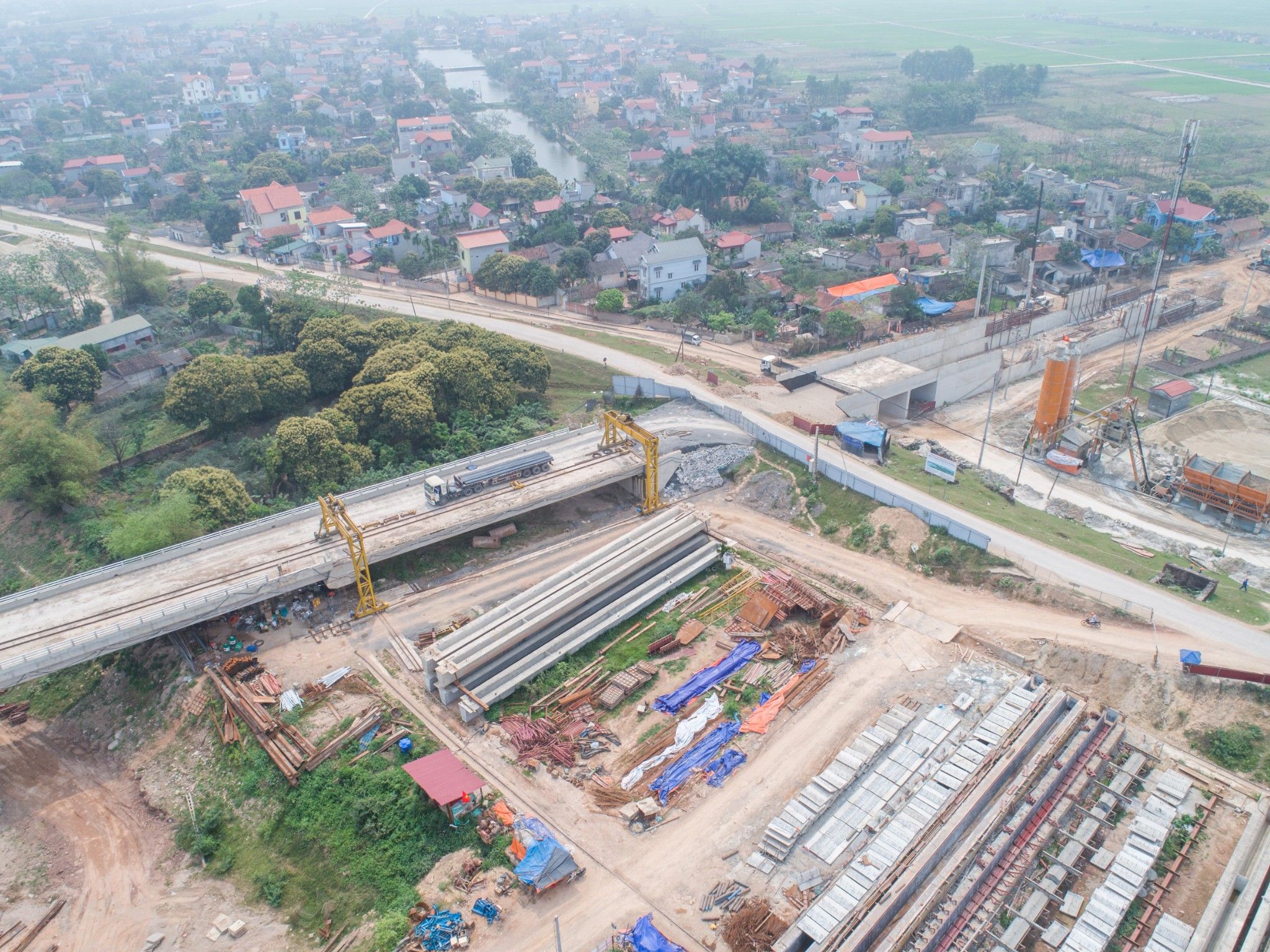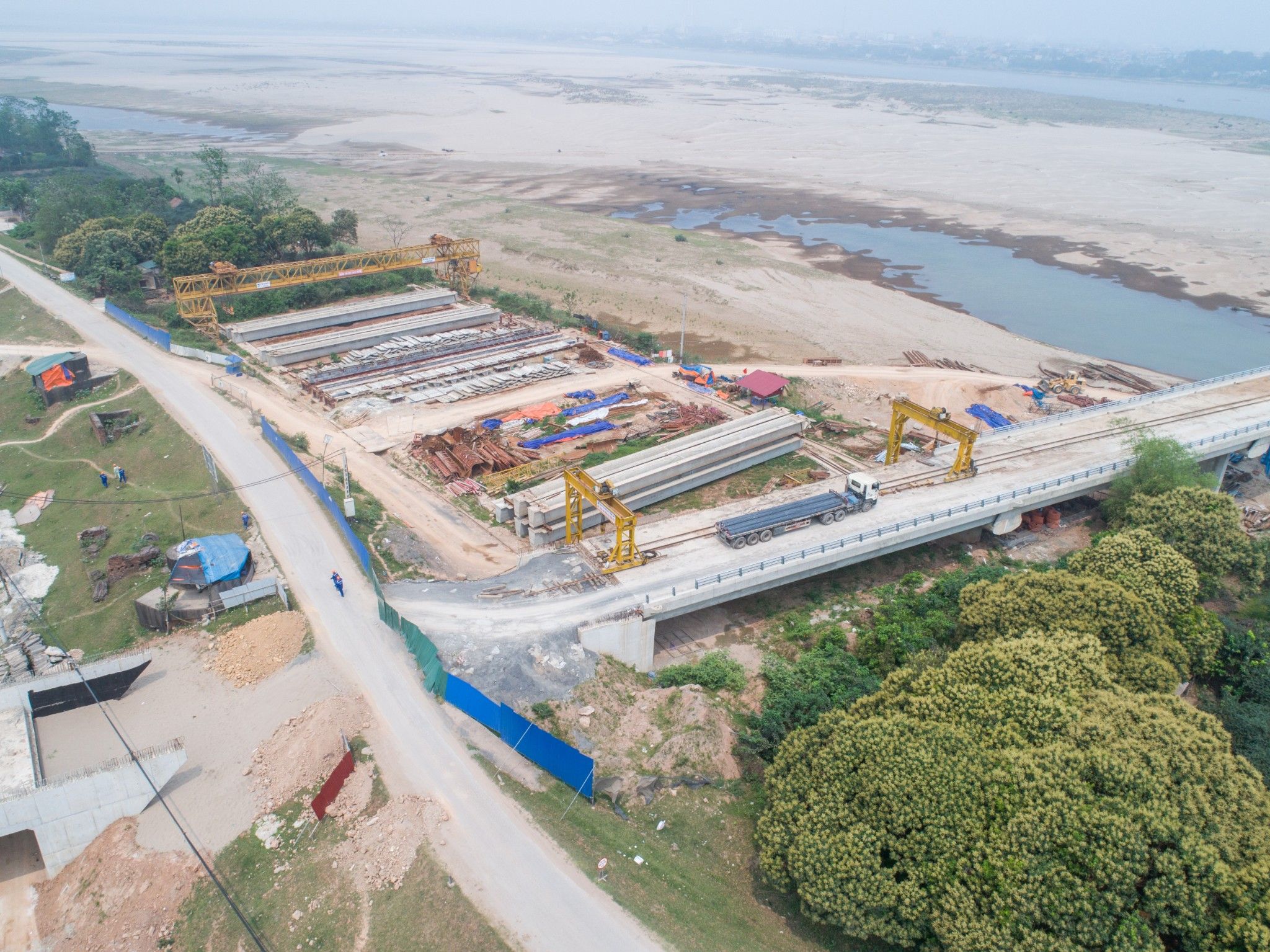 Cầu dẫn gồm 22 nhịp dầm giản đơn BTCT DƯL Super-T và 02 nhịp dầm bản rỗng BTCT DƯL, L=20m.