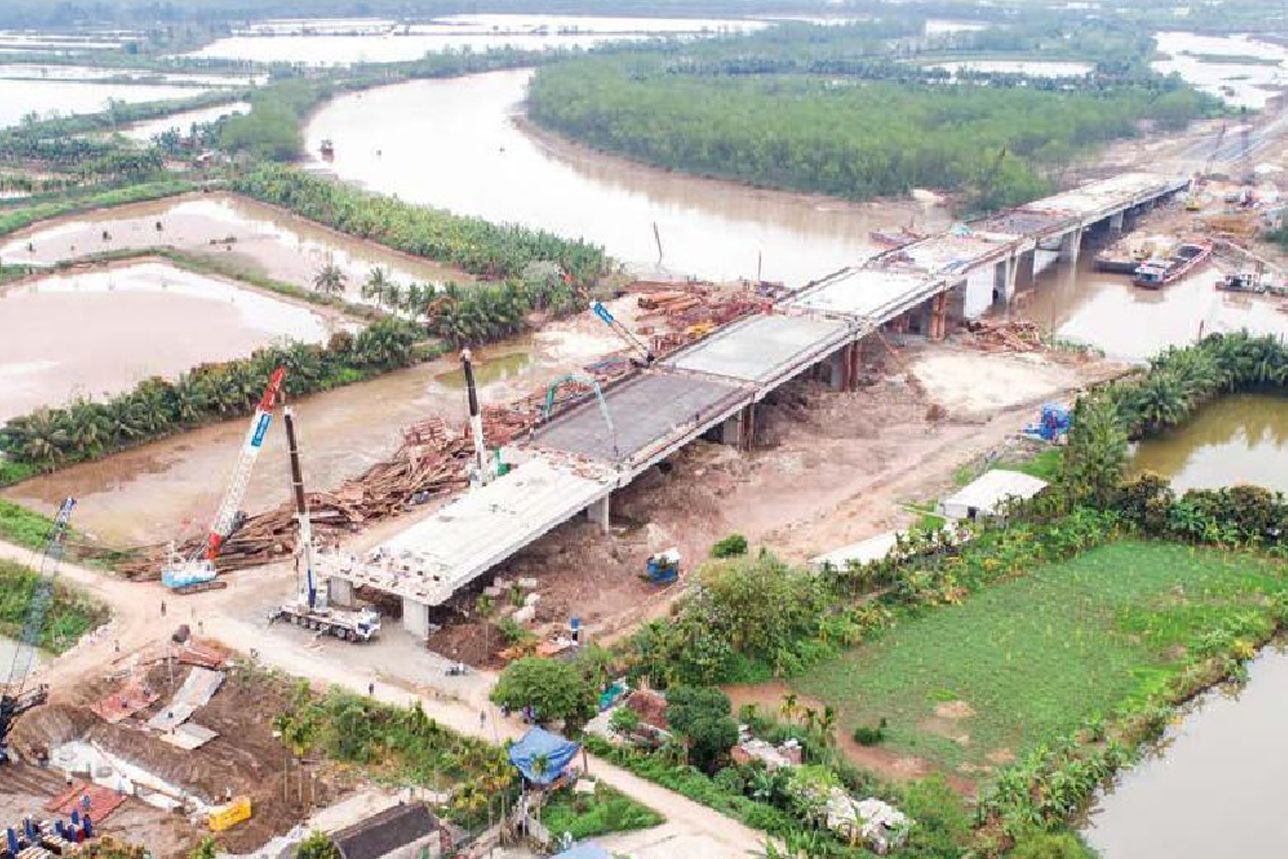 Cầu BTCT DƯL 10 nhịp SuperT 38.2m, tổng chiều dài 446m;