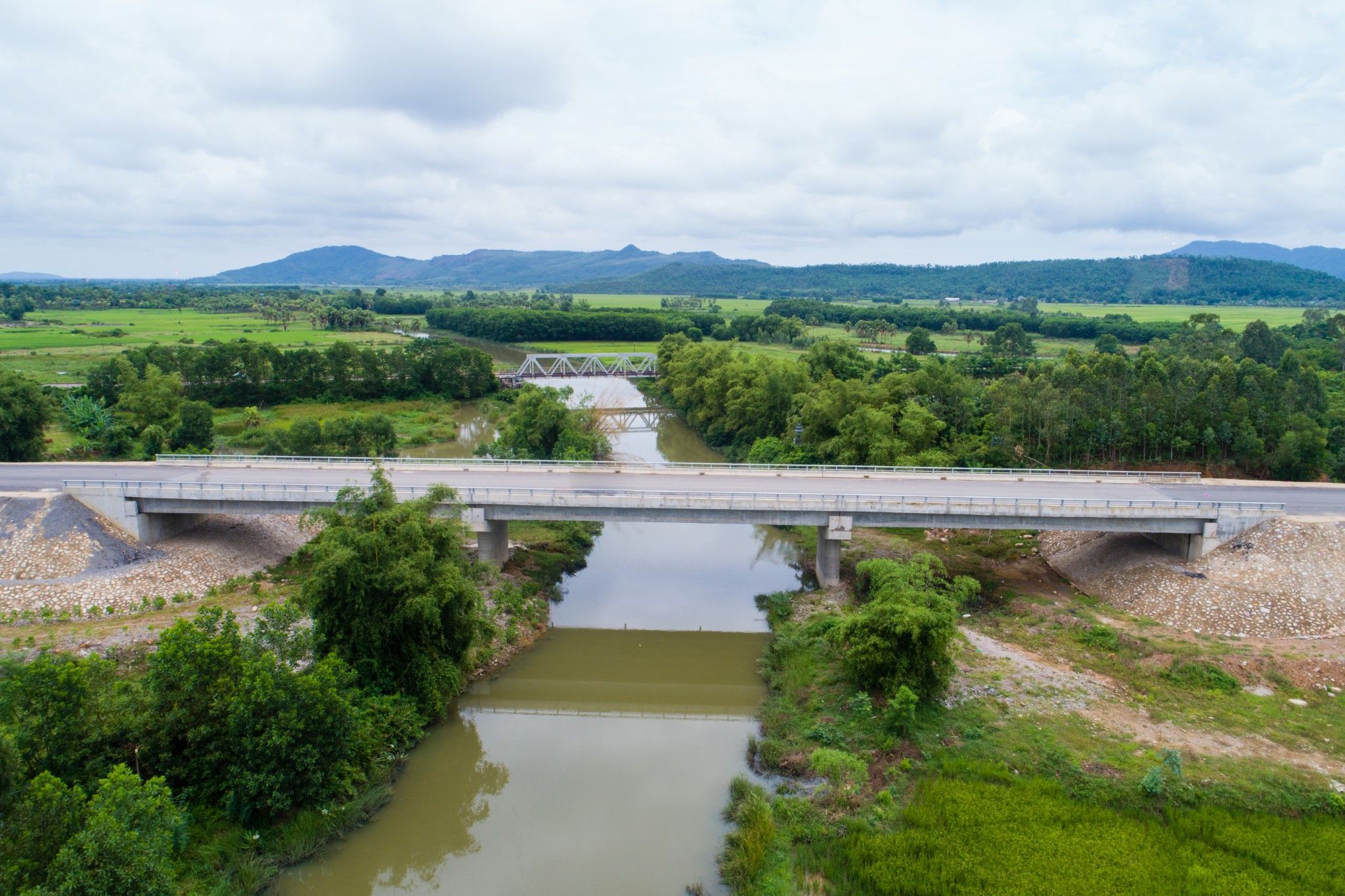 Cầu phải: (33 + 6x40)m + (9x40)m + (9x40 + 2x33)m + (44 + 72 + 44)m + (3x33)m